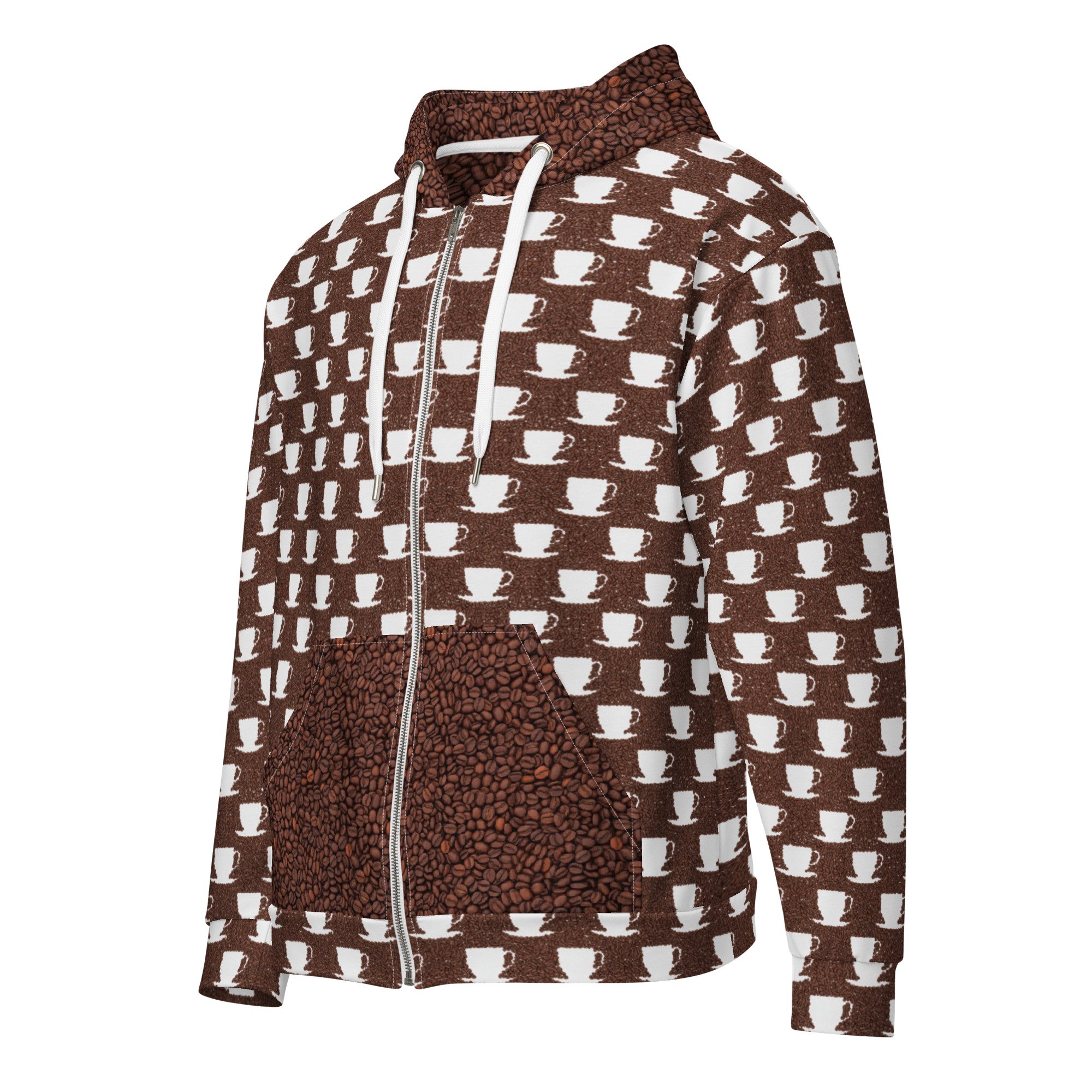 From a distance, it’s crisp and geometric. Take a closer look, and the pattern reveals rows of mugs built entirely from roasted coffee beans. But First, Coffee is part optical illusion, part caffeine devotion—a checkerboard of pure energy for anyone who runs on java before anything else.